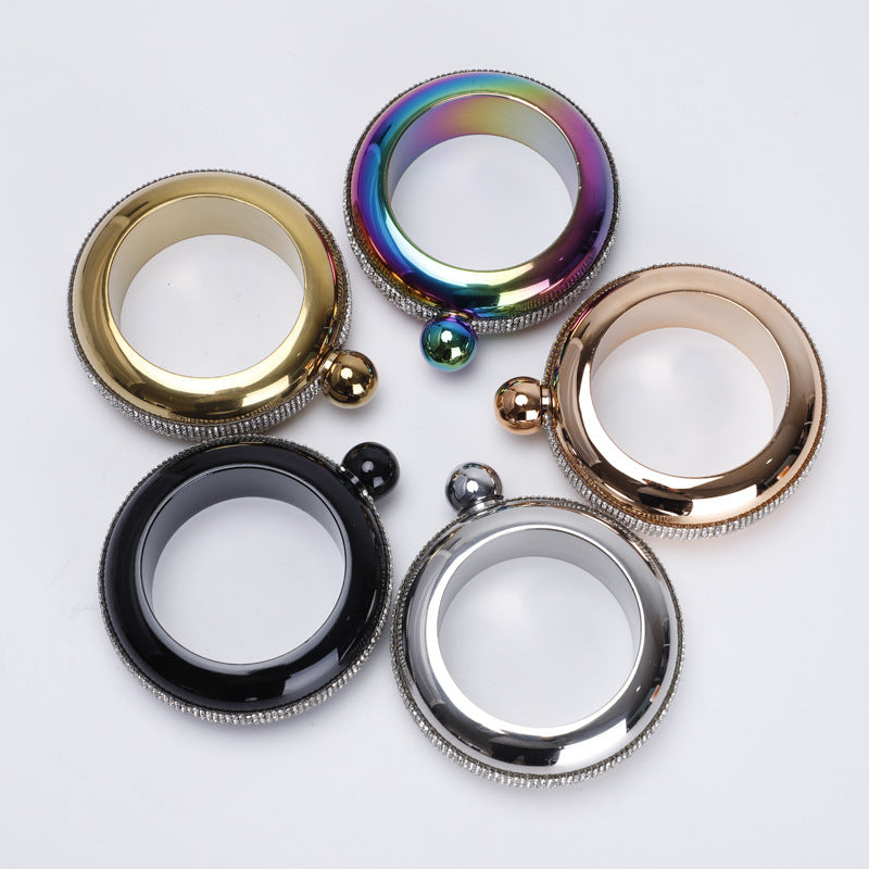 304 Stainless Steel Stick-on Crystals Bracelet Wine Pot Women's 35 Oz Round