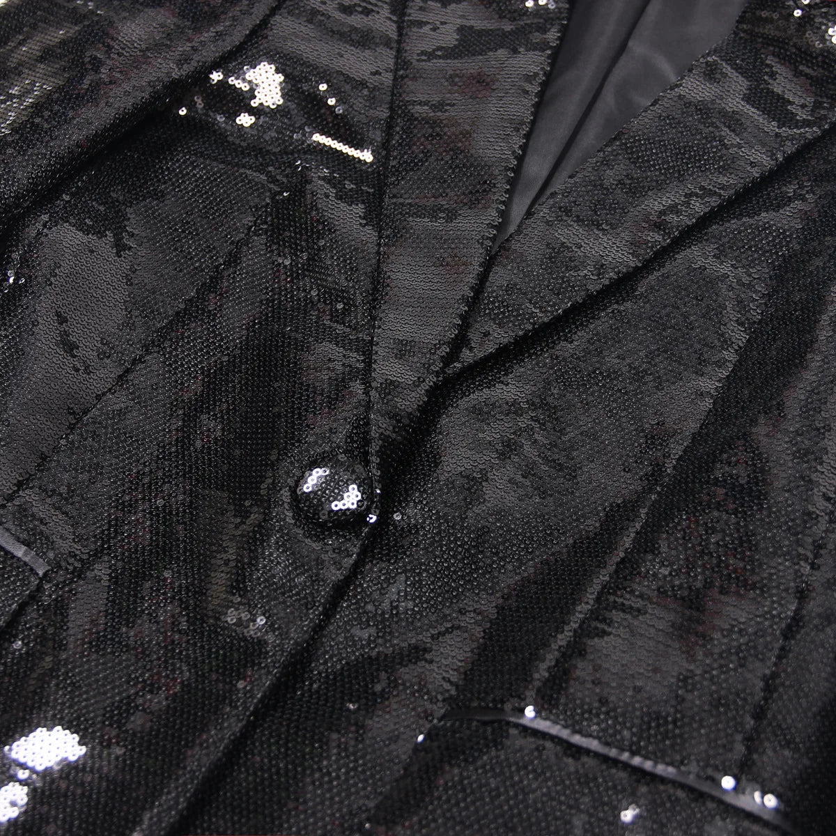 Fabbu Elegant Sequin Blazer Jacket Loose Long Wide Leg Pants Two Pieces Sets New Arrival
