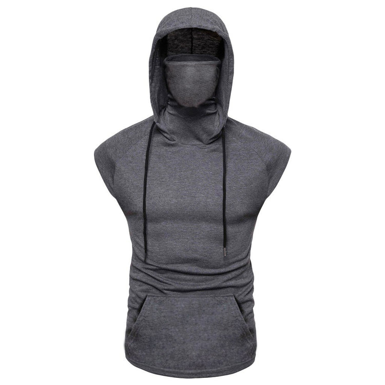 Mens Mask Button Sports Vest Hooded Splice Large Open-Forked Male Vest May 4Th